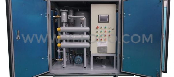 - The machine enclosed in a canopy can remove water, trace water, gas, and particles from oil quickly and effectively, improving oil dielectric strength.